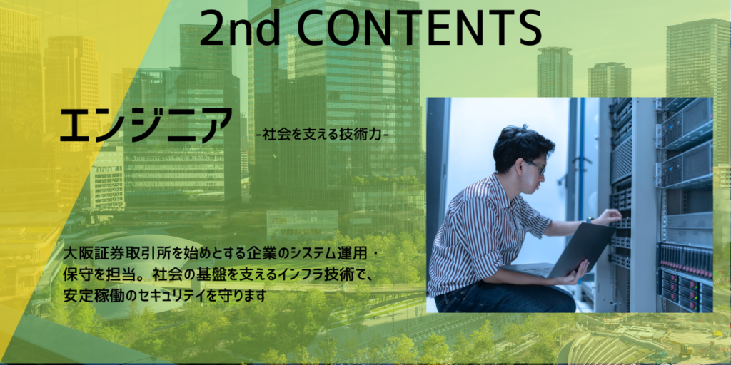 当社のエンジニアは、企業や社会インフラを支えるシステム運用・保守・監視業務を中心に活躍しています。日々の安定稼働を守ることが、多くの人の「当たり前の毎日」を支える仕事です。