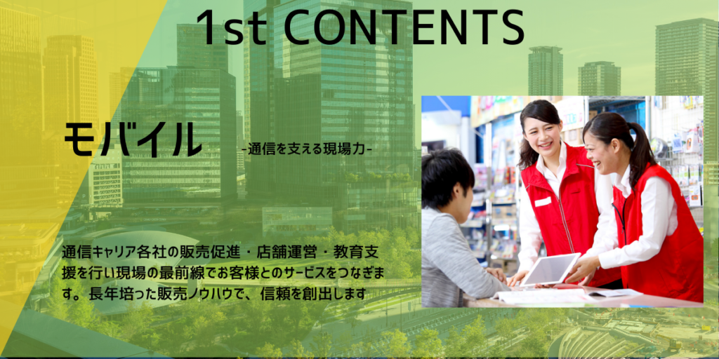 携帯販売員として、家電量販店や携帯ショップにて、スマートフォンや通信サービスのご案内・ご提案を行います。